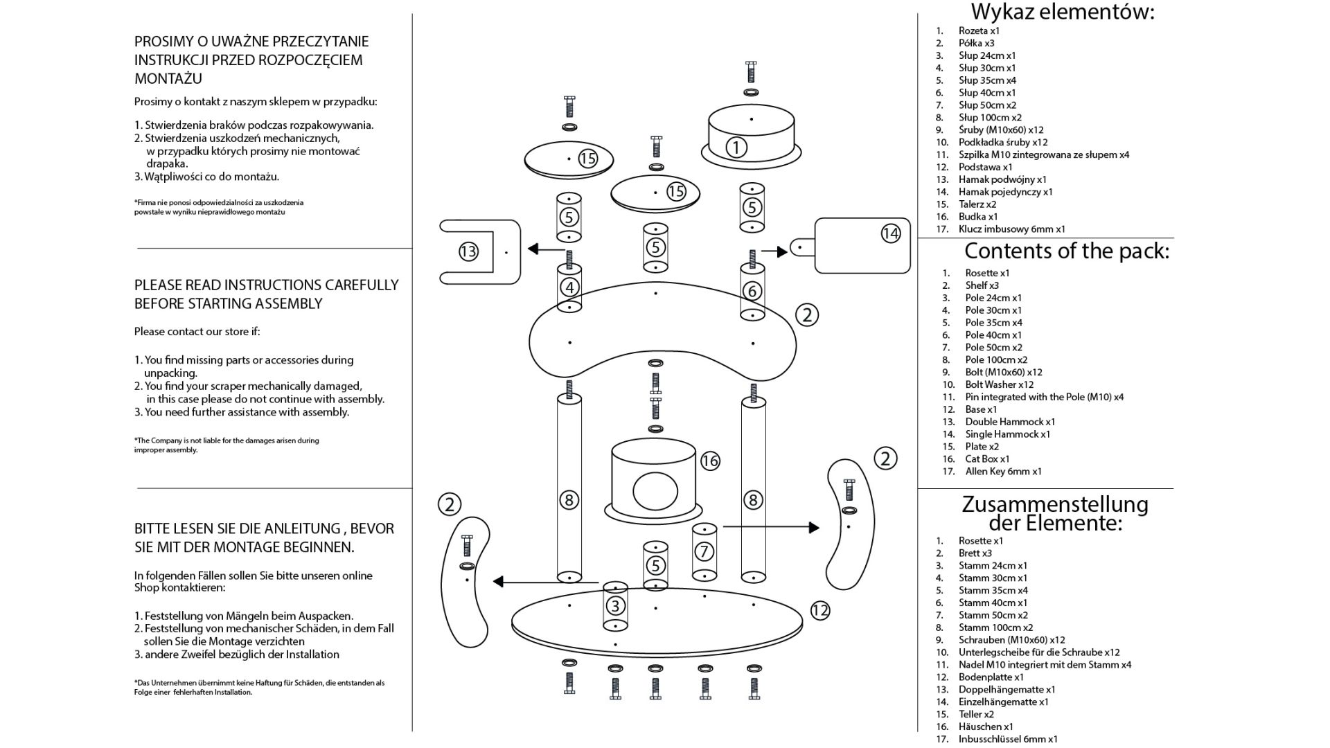 - Voller Garantie- und Nachgarantieservice, jederzeit können Sie einen beliebigen Bestandteil des Kratzbaums bestellen (auch wenn das Modell zurückgezogen wurde, sind alle Bestandteile weiterhin als Ersatzteile verfügbar)
